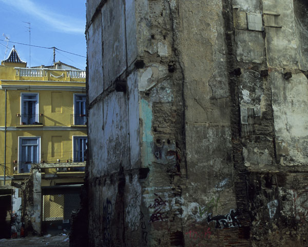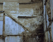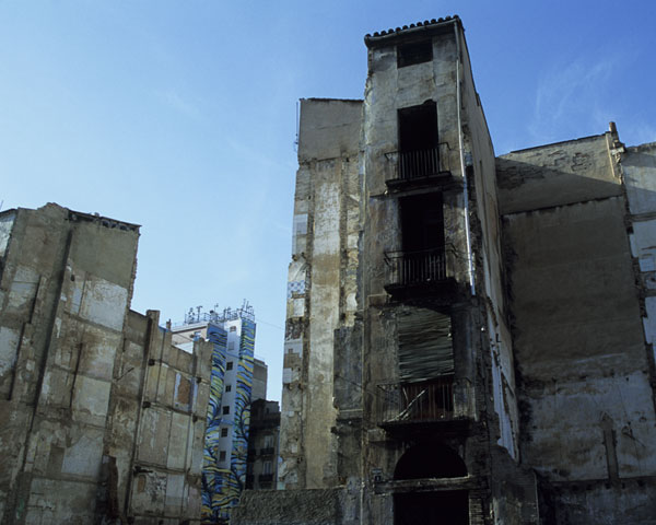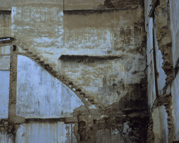 neighboring buildings. These remains show the former staircases, walls, ceilings, bathrooms etc. like a contact sheet of