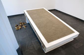 In reference to the famous Freud sofa, pedestals and a paper roll are arranged to a sofa-like object.