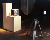 The video camera was connected with the original tv, so you could see the reflections of the soft tv on the original tv. |