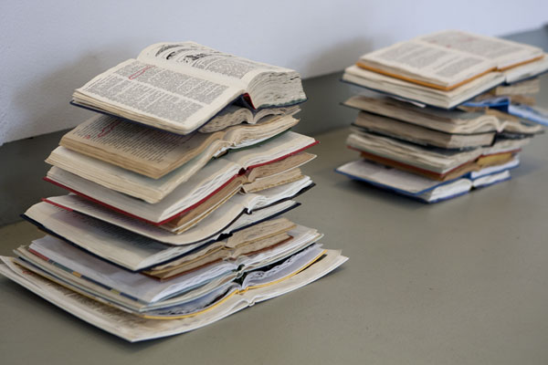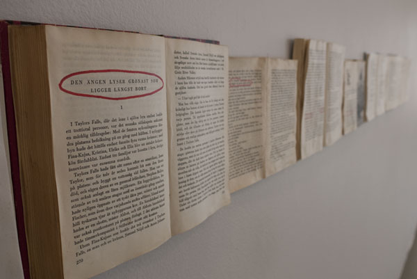 Ausgangspunkt der Ausstellung Textsynthese IV sind gespendete Bücher von Einwohnern in Norrtälje.