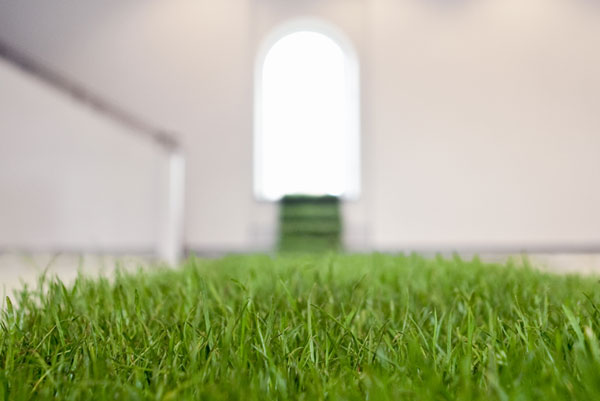 Die Norrtälje Konsthall war ursprünglich eine Brandstation und wurde erst später zur Kunsthalle umfunktioniert. Viele Türen und Fenster wurden zu Gunsten des White-Cube verbaut. Eine dieser versteckten Türen, zur Frontseite, wurde geöffnet und ein Streifen Rollrasen quer über die Strasse gelegt, dann durch die Tür und quer durch die Kunsthalle zum Fenster auf der anderen Seite, wo schließlich der Grasstreifen über eine auf beiden Seiten neu gebaute Stiege hinaus zum Garten auf der anderen Seite führt.